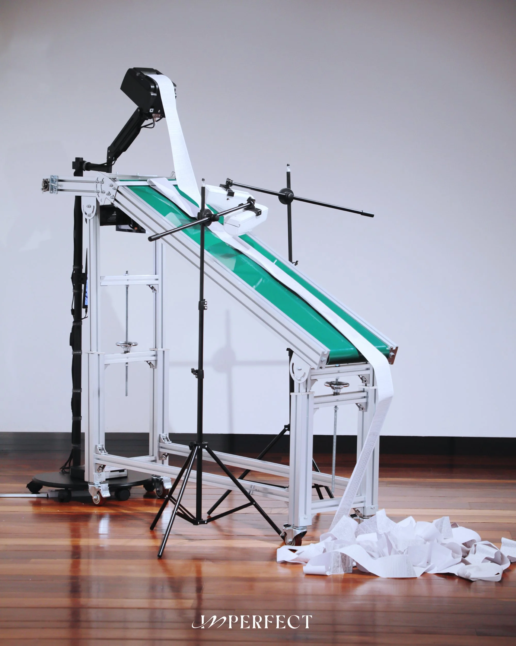 JCCAC 的前身是石硤尾工廠大廈,承載著香港工業時代的記憶。Kobe 這次以影視產業常見的「廠景」和「外景」為概念,將工廠的內外場景轉化為藝術展覽的靈感來源。「廠景」展覽位於 JCCAC,而「外景」則在 Art Basel 的展位上呈現。她解釋道:「這裡本身是工廠,所以我便使用廠景和外景的概念,來帶出這兩個展覽的關係和不同。」